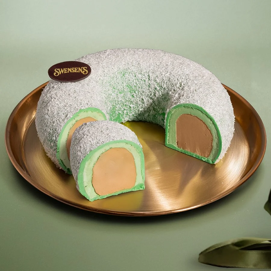 A true centrepiece for sweet Raya moments. Featuring two indulgent layers of ice cream - salted gula Melaka & ondeh-ondeh ice cream.
